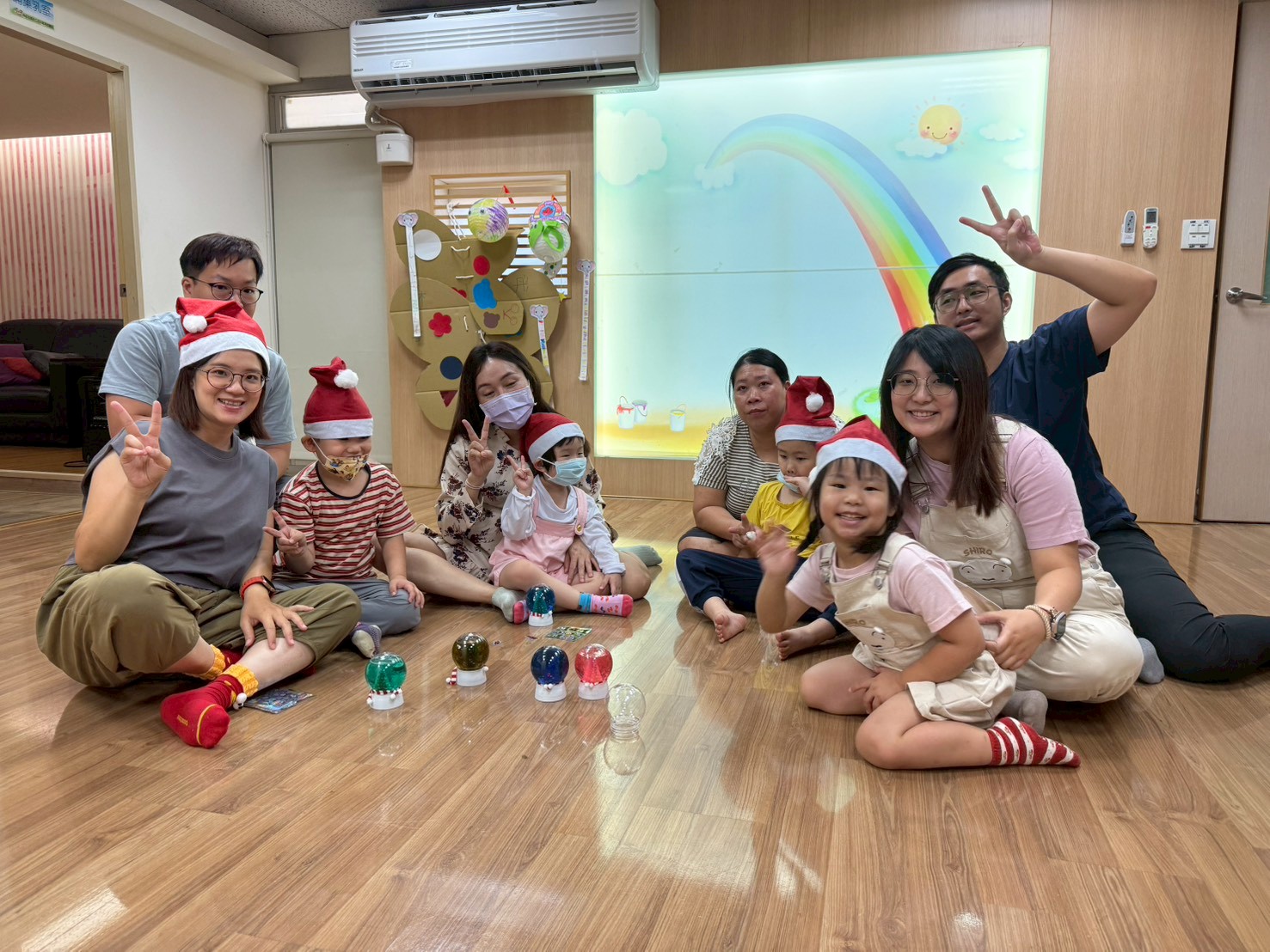 本次親子共學以聖誕節主題進行,邀請家庭在歡樂氛圍中共玩共學。活動安排多項趣味互動,包括孩子最期待的耶誕喀拉 OK 歡唱,讓親子一同跟著音樂唱出節慶心情;耶誕禮物樂高挑戰,促進親子合作完成小作品;紙杯疊疊樂考驗專注力與耐心;以及深受孩子喜愛的耶誕寶貝躦煙囪闖關,鼓勵孩子勇敢嘗試、發揮身體動能。最後由家長陪同孩子製作充滿節慶氛圍的耶誕星空瓶,親子臉上都出現了驚喜與成就的笑容,活動在溫馨與歡笑中圓滿結束。